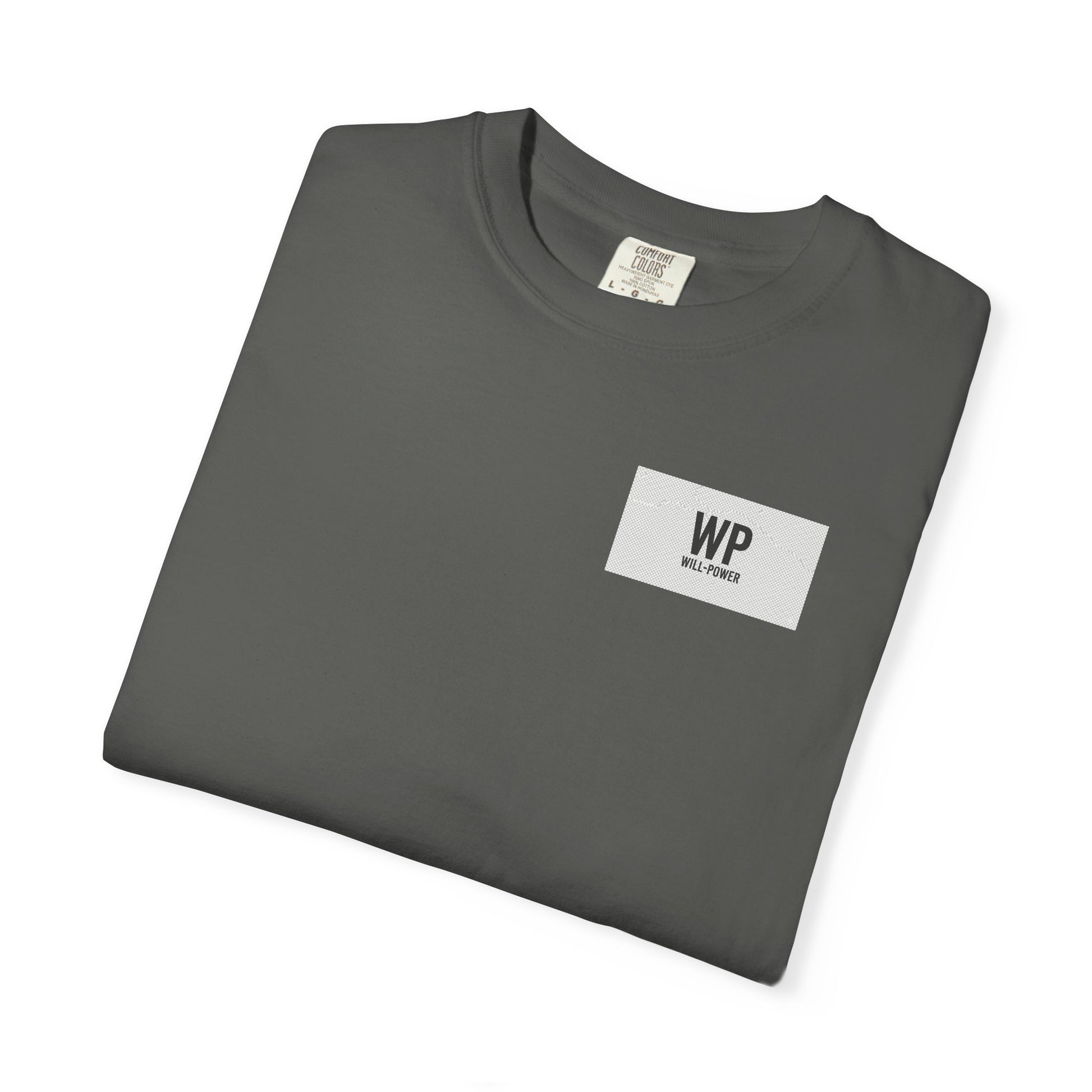 This heavyweight garment-dyed tee carries a quiet confidence. The muted, lived-in color and relaxed cut invite movement—whether you’re pushing through a morning workout, sketching plans at a late-night desk, or meeting friends for a slow coffee. A simple rectangular patch across the chest reads “WP” with a small “WILL-POWER” below, a subtle reminder that steady effort matters more than loud declarations. The soft, broken-in texture from post-construction dyeing feels like a favorite shirt from the first wear. It’s an easy layer that blends with rugged denim or worn-in chinos and fits into days when focus, grit, and calm resolve lead the way.